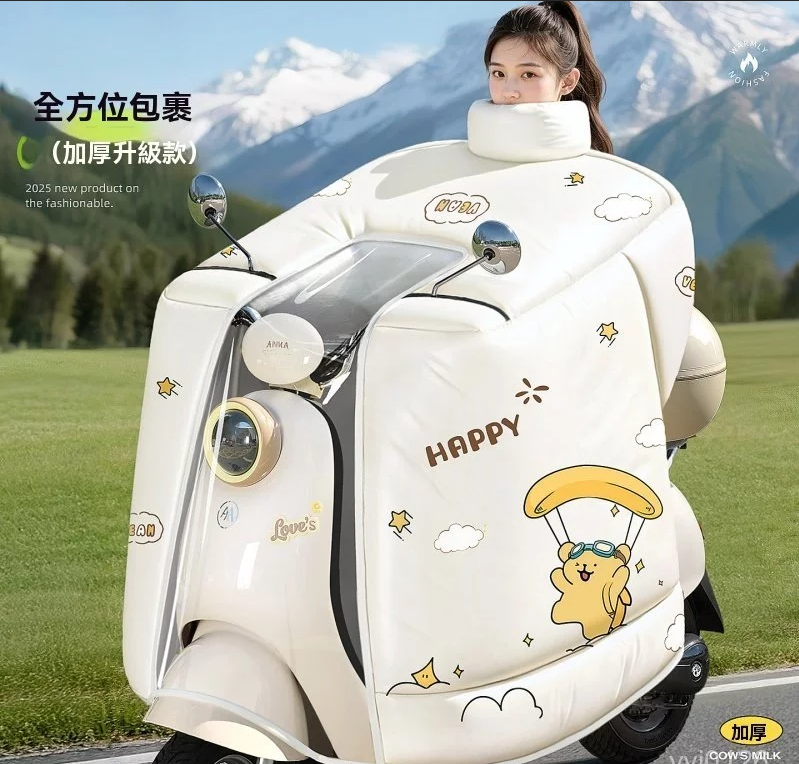 這款擋風被不僅能防寒保暖,還能防雨、防塵,並有效降低風阻,提升騎行安全性。無論您是短途通勤還是長途出行,都能在任何氣候中提供穩定舒適的使用感。適配多種型號的機車踏板車,讓您使用毫無顧慮。